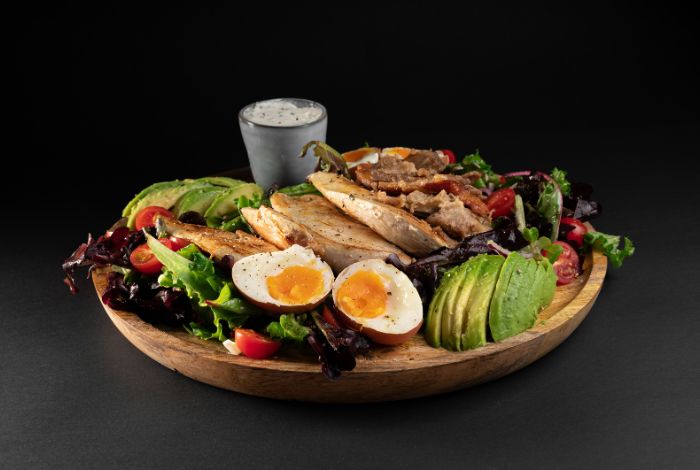 Contiene : Ensalada (Lechuga y Tomate), huevos cocidos, aguacate, pollo, costilla al horno y crema de queso con cebollino.